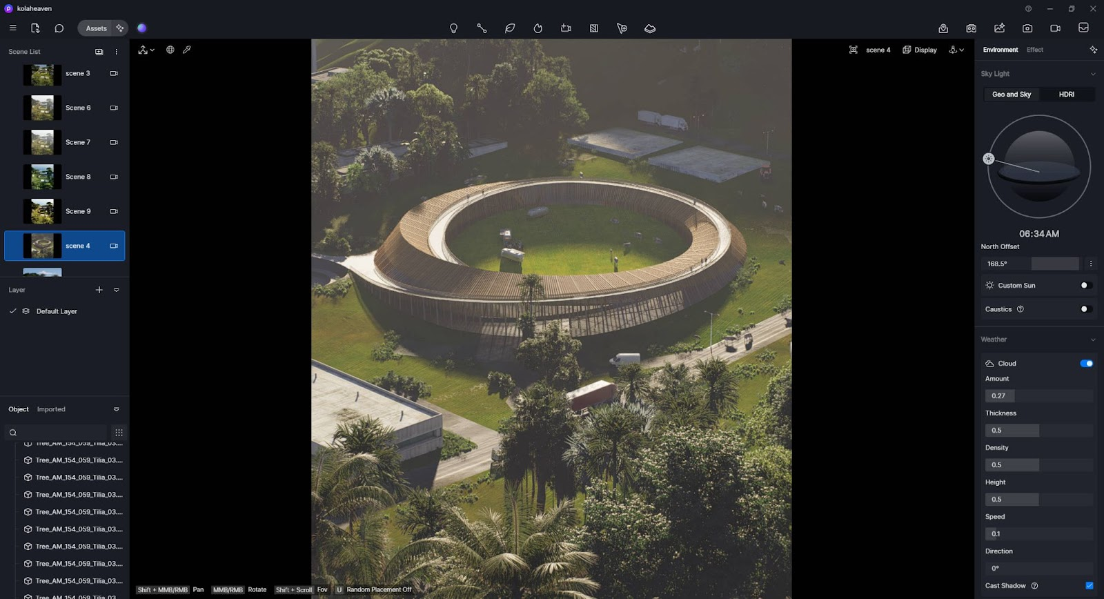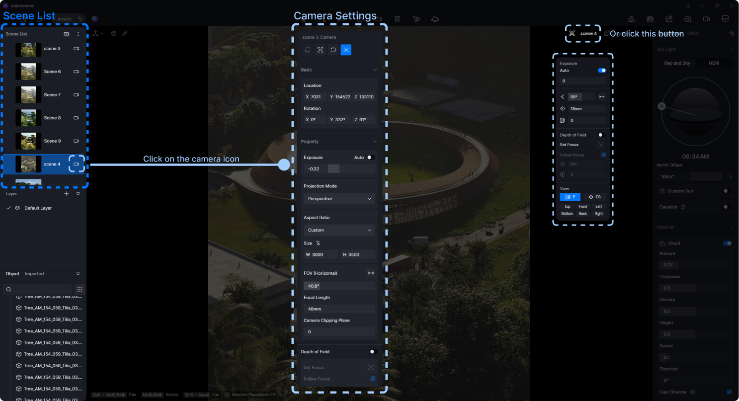 “Scatter” is a procedural plant scattering tool. You can effortlessly create delicate landscape design using this feature.