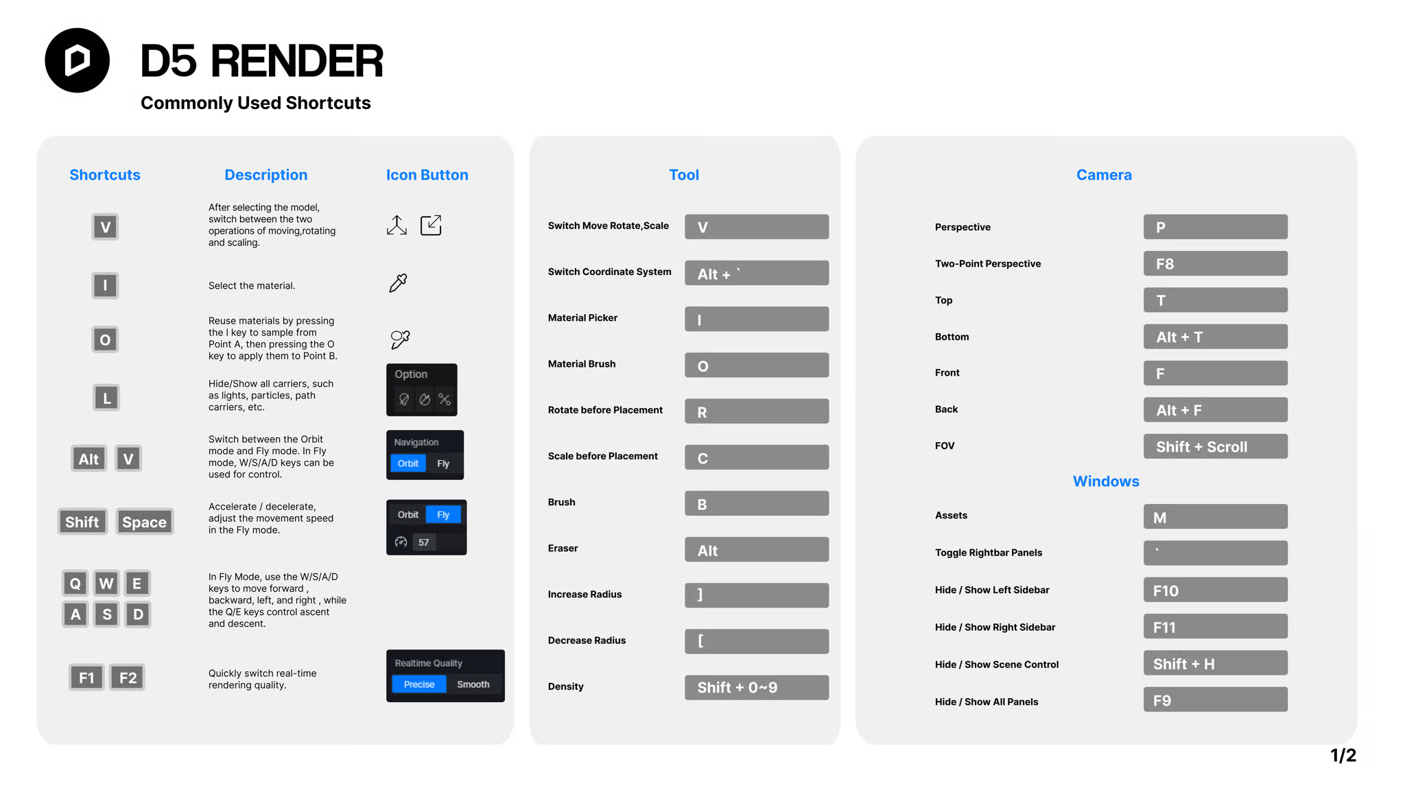 We also provide shortcut hints at the bottom of the viewport, allowing you to conveniently check the shortcuts while operating.